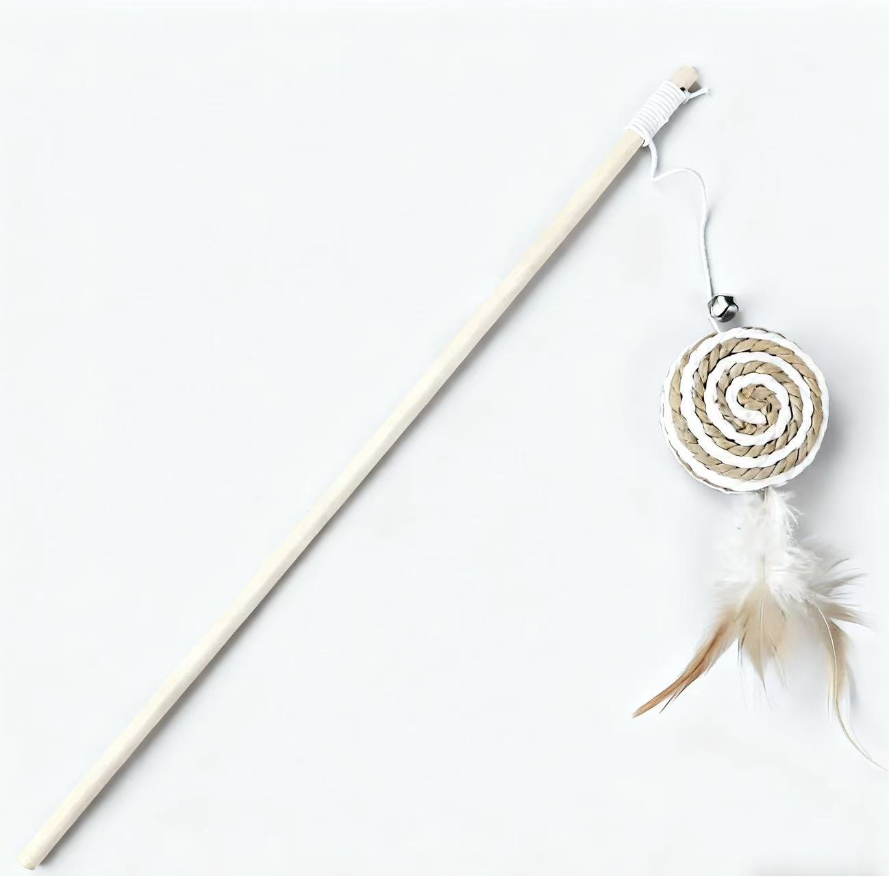 • The Woven Lollipop Teaser Stick has a spiral woven lollipop-shaped toy with feathers and a bell. The bell’s sound and the unique shape will surely pique your cat’s curiosity.